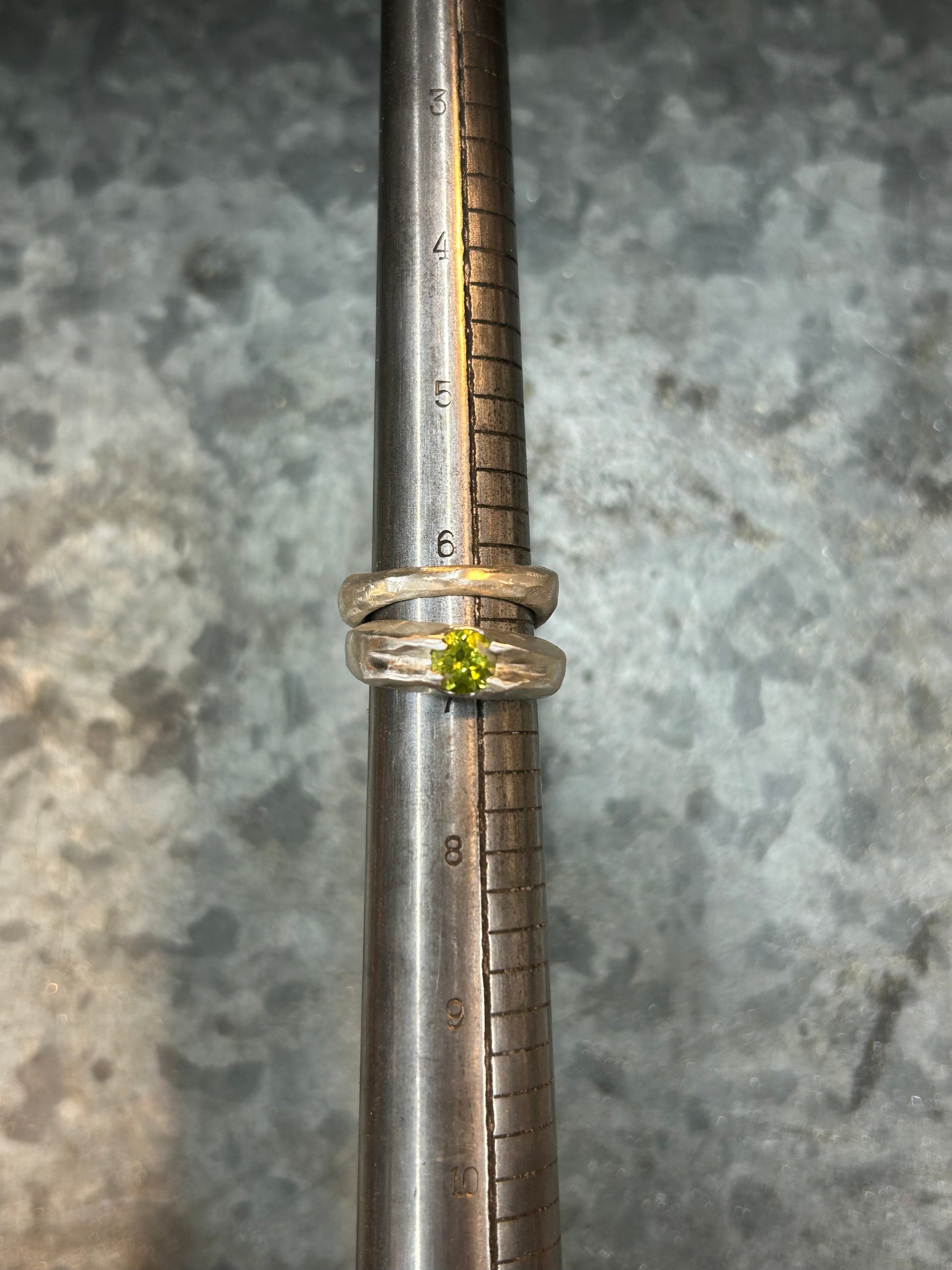 Solid sterling silver band with a zirconium, a red garnet, a citrine or a peridot.